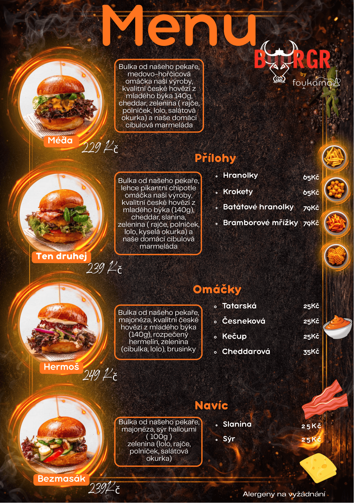 Bulka od našeho pekaře, kvalitní české hovězí z mladého býka a naše domácí cibulová marmeláda! To jsou hlavní pilíře naší kuchyně!